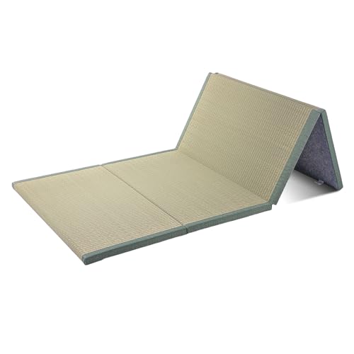 FULI Japansk tatami-madrass, tatami-matta, Igusa-matta (japanskt rusande gräs) vikbar i tre, tillverkad i Japan (naturlig, tvilling)