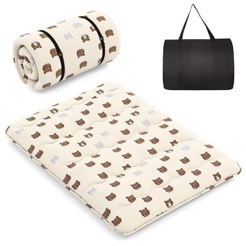 COSTWAY Japansk futonmadrass, tatami-matta, golvmadrass, hopfällbar madrass med tvättbart överdrag, vikbar sovmatta med bärväska, brunbjörn, 140 x 200 cm