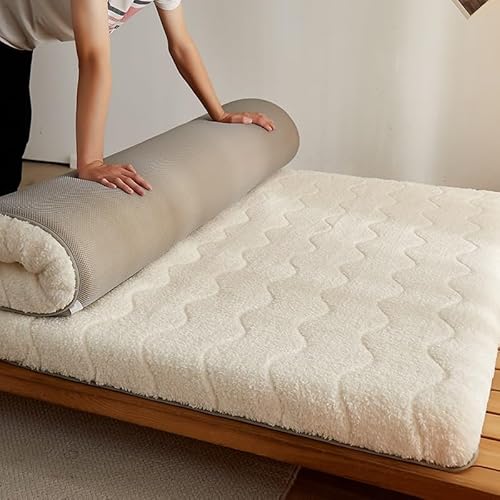 Futonmadrass Full storlek 100% lammull Vadderad japansk golvmadrass Vikbar och bärbar Roll Up Tatami-madrass Gäller sovrum/vardagsrum/golvmatta/tältmatta/gäst. (Color : White, Size : 150x200cm/59x7
