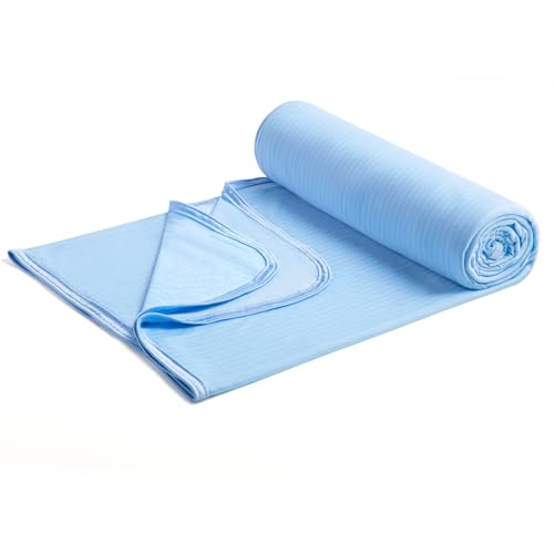 Elegear Svalkande sommarfilt, japansk kylfiber ”Arc-Chill”, Q-Max 0,5, absorberar kroppsvärme, lätt sommarfilt, 100 % bomull, för säng, soffa (blå, 150 x 200 cm)