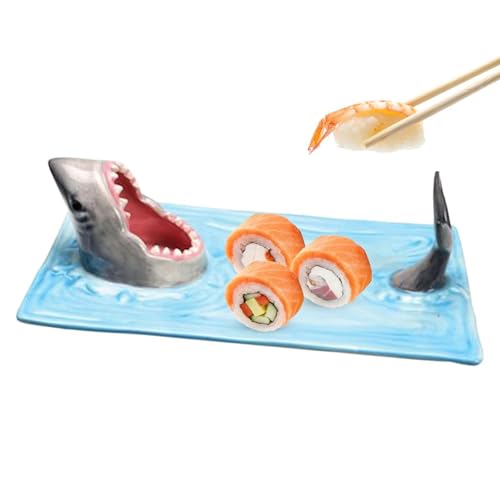 Haj sushitallrik | hajformad bestick med mat | sushi restaurangtallrik – japansk tallrik, ostbräda | Kreativ hungrig haj design för sushiost pasta kött
