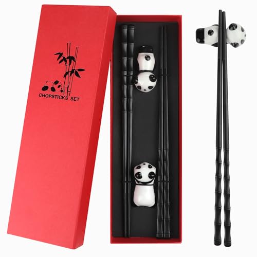 NEUTYPECHIC 2 par kinesiska ätpinnar med 2 kinesiska pandor och förpackningslåda, japansk spülmaschinenfest för en sushi-kit, asiatisk 24 cm