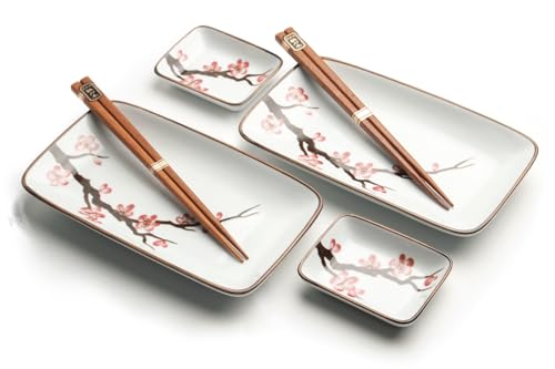 Lyxig – sushiset – orientalisk sakura – 6 delar – sushiset – 2 personer – japansk servis – inkl. 2 sushitallrikar – 2 sushi-skålar – 2 sushitoppar – förpackad i en vacker presentask
