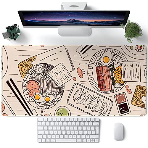 Musmatta, japansk, ramen, sushi, mat, skrivbordsmatta, beige, XL-stor, hel musmatta för skrivbord, spel, utökad skrivbordsdyna för dator, bärbar dator, 80 x 40 cm, halkfri gummibas med sydda kanter