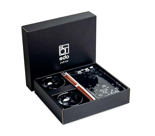 Hana Black Sushi set svart – för 2 personer – japansk servis med tallrikar, tallrikar och pinnar – förpackad i vacker presentförpackning