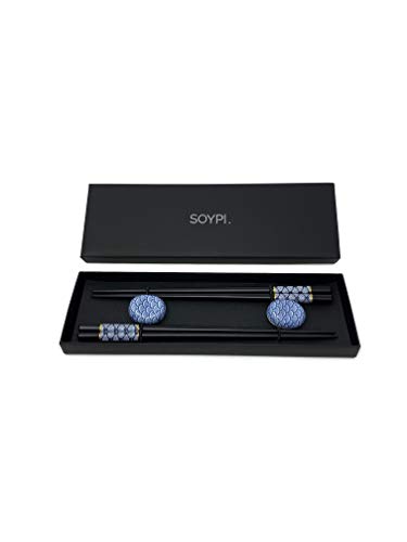 2 par handgjorda ätpinnar, japansk ESS pinnar, sushi pinnar, tvättbar, sushi porslin, återanvändbara ätpinnar trä svart och elegant (Ocean Blue)