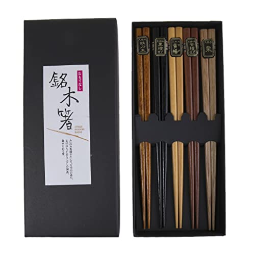lachineuse - Kinesiska träätpinnar set - 5 träfärger - chopsticks - för sushi, ramen, nudlar och ris - traditionell servis - japansk asiatisk kökspresent