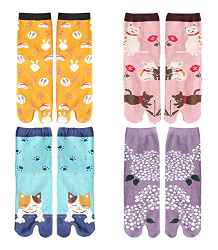 ZEALMAX Japansk stil två-tå strumpor bomull cosplay strumpor tecknad kattstrumpor stora tåstrumpor för kvinnor och flickor – 4 par paket