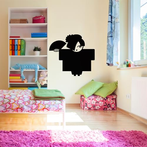 Ambiance Sticker Svart skiffer - självhäftande raderbara väggdekaler - tecknad film av en japansk kvinna - H50 x L 55 cm