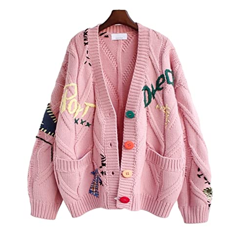 Tröjor för kvinnor Tecknad Söt Loose Knit Cardigan Kvinna Japansk College Style Sweater Coat (Color : Pink, Size : One Size)