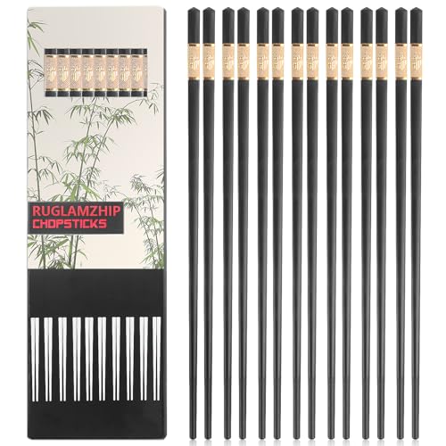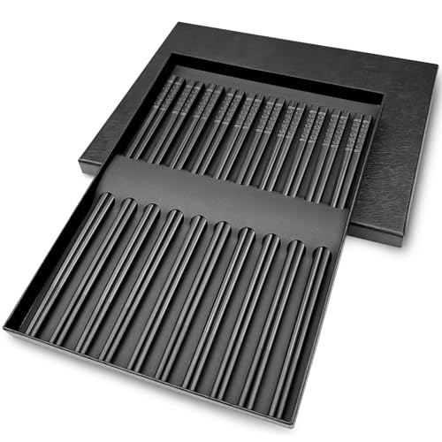 10 par svarta ätpinnar, legering diskmaskinssäker, återanvändbara, kinesiska japanska halkfria för sushi och asiatiska rätter