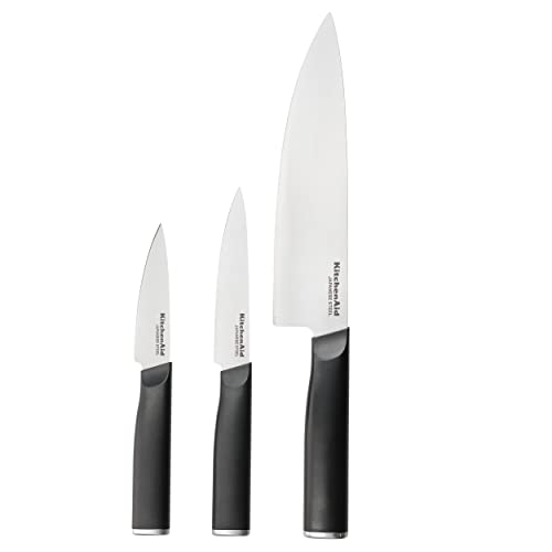 KitchenAid Knivset med 3 Köksknivar, Japanskt Stål med Hög Kolhalt, Silverfärgade/Svarta, 20 cm, 14 cm, 9 cm, KEG3PTHEOHOBA