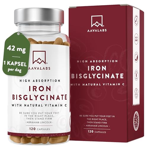 Järntillskott med naturligt C-vitamin - Effektiva järntabletter med 42 mg aktivt järn - Järntillskott för kvinnor och män, med hög biotillgänglighet - GMO-fritt, utan gluten & allergener, 120 kapslar