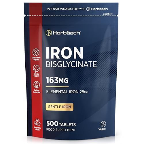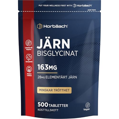 Järntabletter 28 mg | 500 Veganska Tabletter | Järntillskott Hög Dos | Järn Bisglycinat | Gentle Iron Tablets for Men & Women | Horbaach