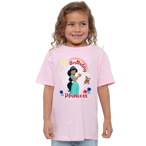 Aladdin Födelsedagsprinsessa med Jasmine And Abu Girls T-tröja, rosa, 7–8 år för flickor, Rosenröd, 7-8 �r