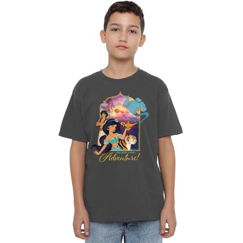 Aladdin Jasmine, Abu, Rajah, Genie are Ready for Adventure unisex barn t-shirt, träkol, 12-13 år, Träkol, 12-13 År