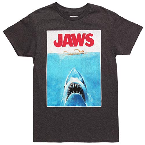 Fifth Sun Men's Retro Jaws Poster T-Shirt, Charcoal Heather, Large