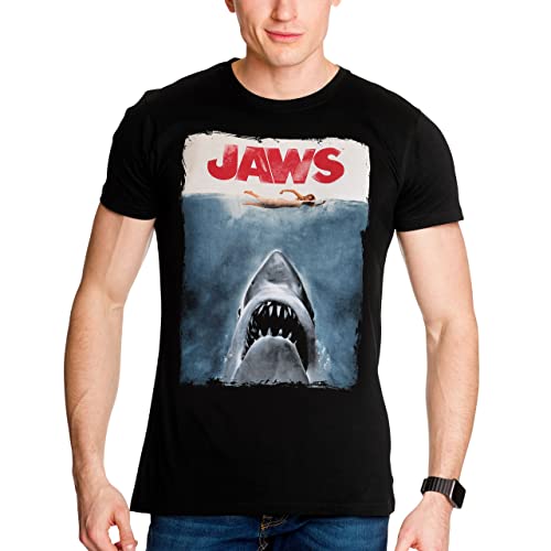 Elbenwald Jaws T-Shirt med Jaws Poster Motif för män kvinnor Unisex bomull svart - M