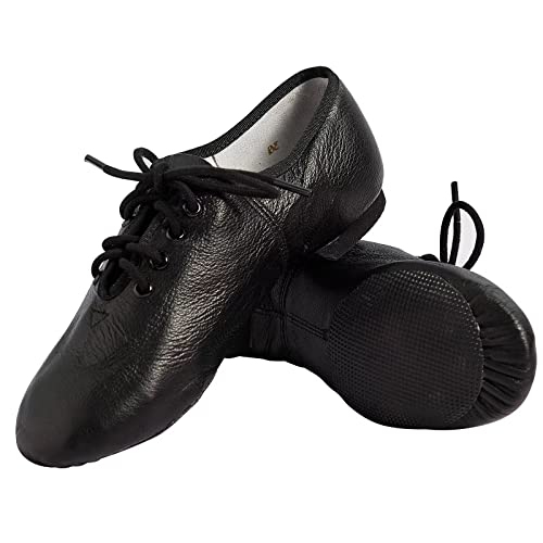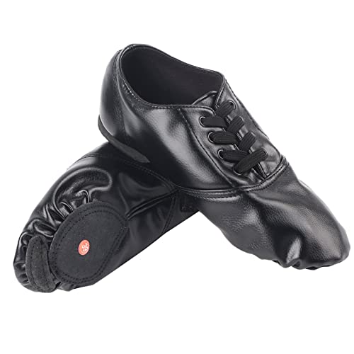 flexdans Jazzskor, Slip On Jazz skor äkta läder delad sula, dansövning och prestanda jazz dansskor för kvinnor män, svart, 36 EU