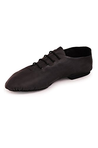 flexdans Jazzskor, Slip On Jazz skor äkta läder delad sula, dansövning och prestanda jazz dansskor för kvinnor män, svart, 36 EU