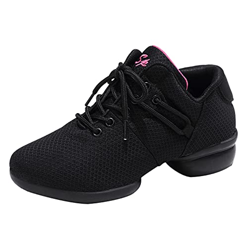 Jazzskor dam, Lace Up dansssneaker dam, delad sula, luftkudde, moderna dansskor, plattform, Svart rosa 727, 39 EU