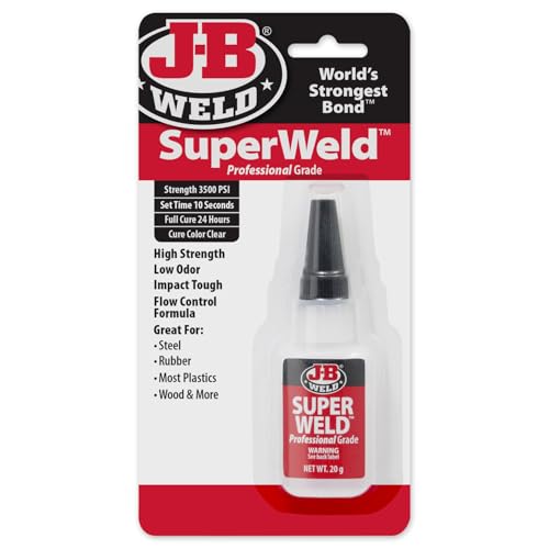 JB Weld JB33120 SuperWeld Instant Setting Hög styrka, 20 gramflaska, för stålgummi De flesta plaster trä och mer, bindningar på sekunder, botfärg klar