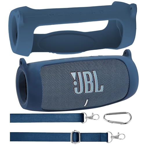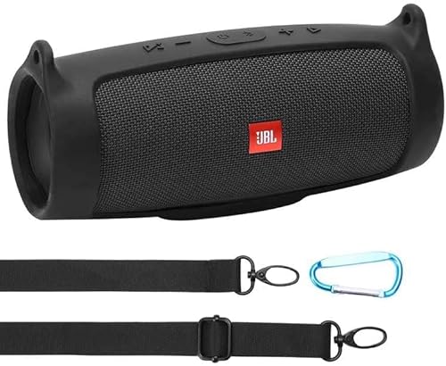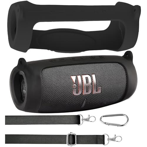 Silikonfodral för JBL Charge 5, skyddsfodral med axelrem och karbinhake för JBL Charge 5, bärbar resväska (svart)