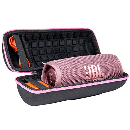 co2CREA Hårt resefodral i EVA, förvaringsfodral för JBL Charge 4/JBL Charge 5, bärbar Bluetooth-högtalare (svart fodral och rosa dragkedja)