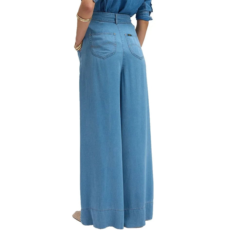 Lee 112377716 Pleated Wide Leg Jeans Blå 32 / 33 Kvinna