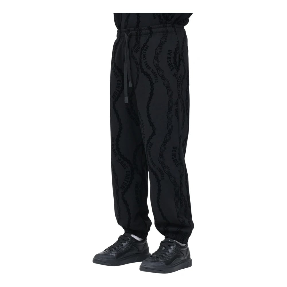 Versace Jeans Couture, Byxor , Herr, S, Bomull, Svart Chain Couture Velvet Sportbyxor