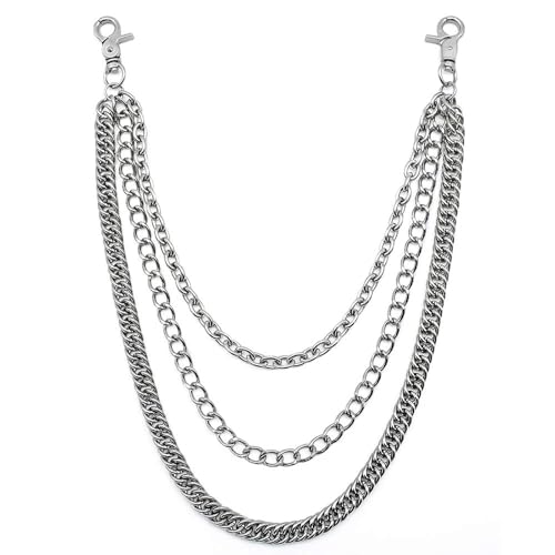 KingYH 1 Pack 60cm Jeans Chains Triple Chains Snap Closure Pants Chain Hip Hop Style for Men Women Fashion Hip Hop Rock Jeans Punk Trouser Decoration Clothes Accessories