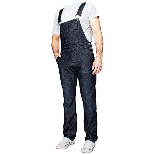 Enzo Jeans herr, blå denim, hängselbyxor, stentvättade hängselbyxor, overaller, midja 76 cm - 127 cm, Mörkblått, 38W x 32L