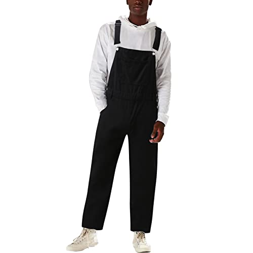 Jeans overall herr, hängselbyxor herr blå vintage avslappnad med justerbara remmar multifunktion arbetsbyxor med praktiska verktygsväskor mekaniska sparkbyxor för sommaren, svart, L