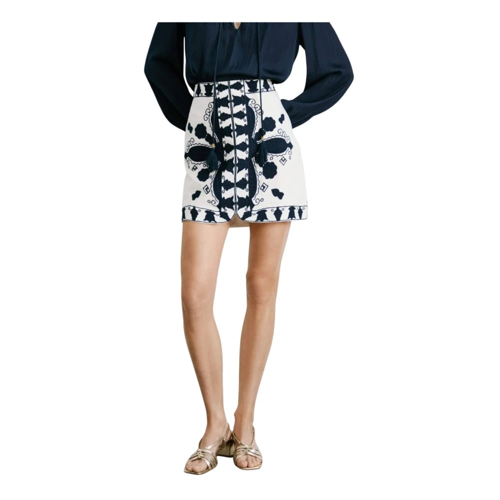 Pepe Jeans, Kjolar , Dam, M, Bomull, Blommig Broderad Bomullsminikjol