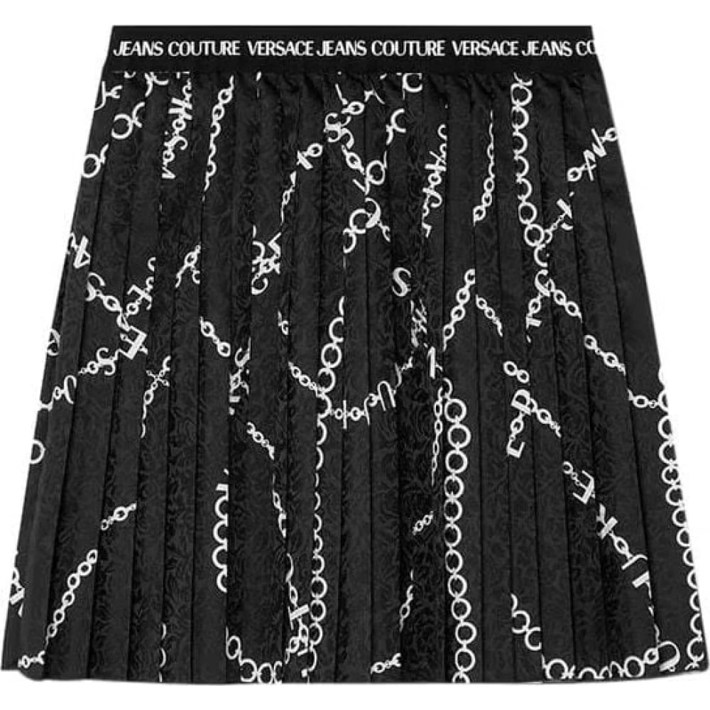 Versace Jeans Couture, Kjolar , Dam, XL, Chain Print Pleated Mini Skirt