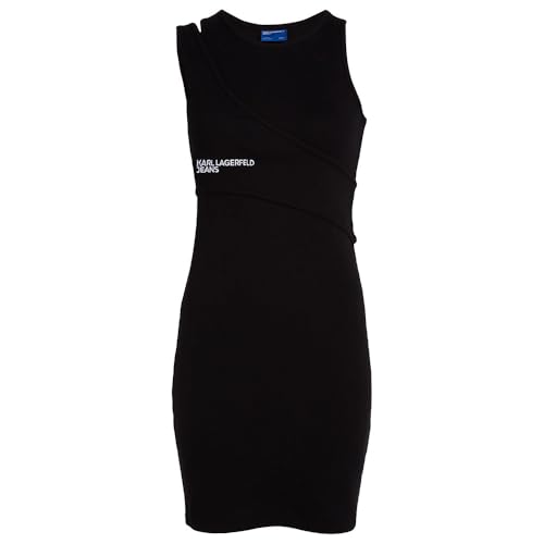 KARL LAGERFELD JEANS dam ribbad linne casual klänning, svart, M