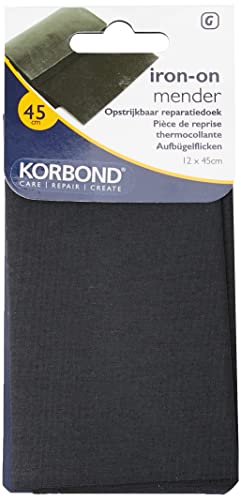 KORBOND Bomull Extra brett järn på herr – svart – 12 cm x 45 cm – osynlig permanent lagning – ingen sömnad krävs – perfekt för kläder och plagg: Byxor, klänningar, jeans, jumpers, linne, skola