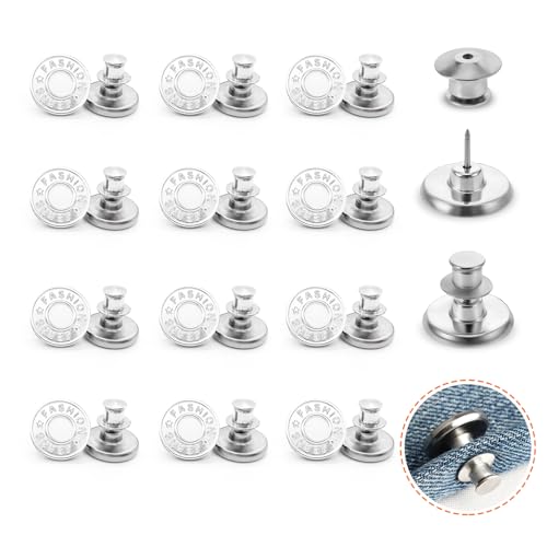 12 stycken jeansknappar utan sömmar, knappar för jeans, byxlinning, snäv, knappar, för ersättning för att förlänga eller minska byxstorlek, jeansknappar 17 mm (silver)