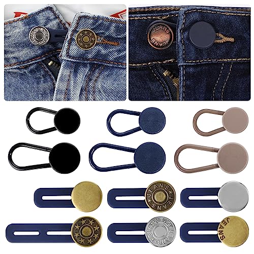 12PCS knappförlängare för jeans, byxor midja knappförlängare, kvinnor män jeans midja förlängare och krage nackförlängare, ingen söm förlänga knappar för klänning skjortor, 3-5CM