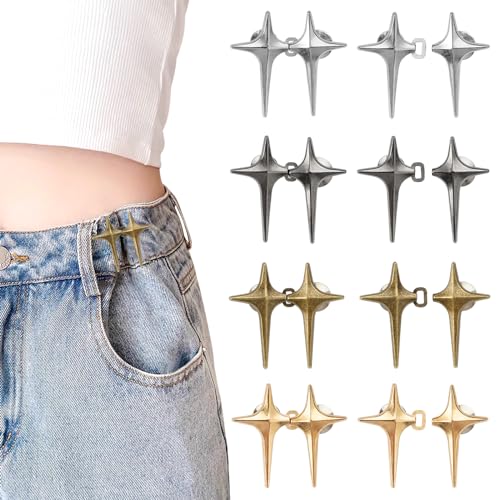 Andibro 4 set fjärilsbyxa midjedragare, justerbart midjespänne set avtagbar knappåtdragare knapp justerare knappar stift för byxor jeans kjolar ärmar