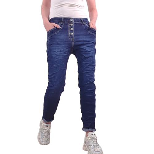 Karostar Dam stretch jeans | pojkvän baggy denimbyxor | knappslå smycken knappar, Denim Pocket Look, M