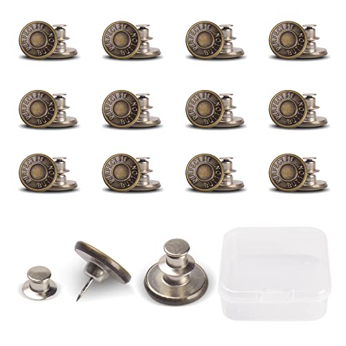 Gegong 12 stycken 17 mm utan sömmar, knappstift jeans, byxknappar för fastsättning, gör-det-själv jeansknapp, knappar, byxor, snäva, jeansknappar, för att förlänga eller minska byxstorleken (brons)