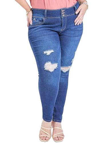 Royalty Dam YMI Plus Size Wannabettabutt 3 knappar lycra jeans tillverkad med återvunna fibrer byxor, Dark Wash Denim, 18, Mörk tvätt denim, 46 SE/Plus