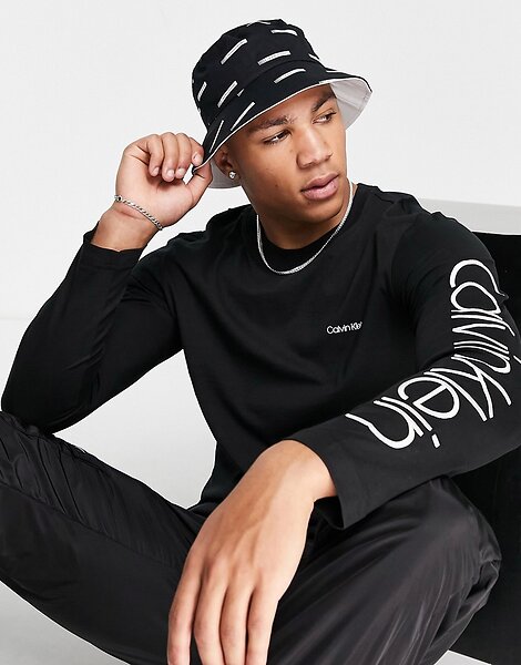 Calvin Klein Jeans Svart solhatt med heltäckande mönster