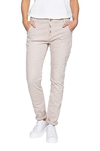 ATT Jeans dam pojke fit jeans med blommigt mönster och krispigt utseende Gwen avslappnat mode quiltade boyfriend jeans komfort fit crinkleoptik Gwen, Beige, 34W x 32L