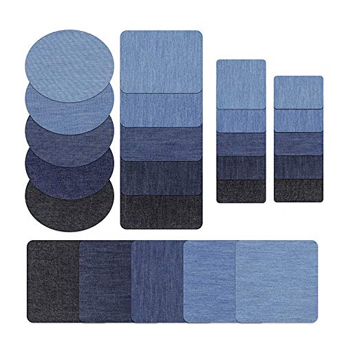 GloBal Mai stryklappar av bomull Demin på jeans, jackor, väskor med ovalt och kvadratiskt mönster, blå