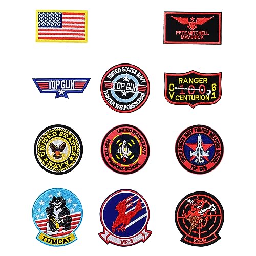 ANYUANKW 11 stycken Top gun tygmärke för strykning Air Force Navy Army Patches broderade lappar barnflagga Maverick patch för jeans jacka kläder väskor mössor