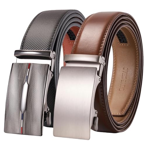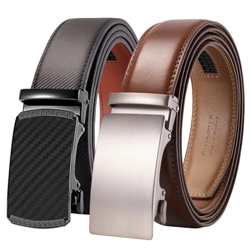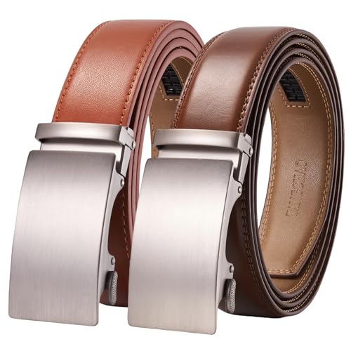 TANGCHAO 2 stycken herrbälte, läderbälte, spärrautomatspänne för män, affärskostym, jeans, 35 mm bälte, storlek justerbar 24 brun + 26 konjak 115 cm