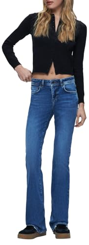 LTB dam Roxy jeans – utsvängd passform med medelhög midja och dragkedja i blått av bomullsblandning – storlek W26L32, Orella Wash 55193, 26W x 32L