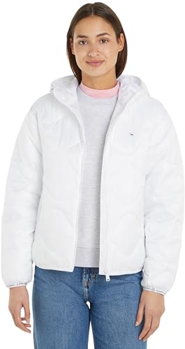 Tommy Jeans Dam quiltad tejp huva puffer Ext vadderade jackor, vit, XXL, Vitt, XXL stor tall